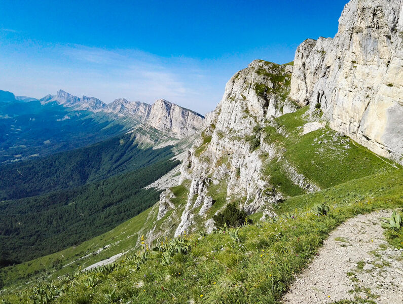 Sous l’impressionnante barrière orientale du Vercors, cette boucle permet de prendre de la hauteur depuis Saint-Andéol et d’apprécier de magnifiques vues sur le Trièves et les Écrins.