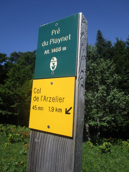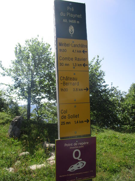 Descriptif pas à pas : 1. Depuis le parking, emprunter la petite route en direction du col de Soliet jusqu’au poteau « Les Anémones ». 2. Continuer a? gauche en direction de Prélenfrey/Chatelard. Le chemin descend en forêt (par temps humide, prendre le sentier qui longe la piste) puis traverse une clairière (panorama sur les Deux Sœurs). L’itinéraire débouche sur la D 8B ; la traverser puis la longer sur 100 m. Au lieu-dit Arzelier, quitter la route pour emprunter le chemin à droite en direction de Prélenfrey. Poursuivre la descente en forêt jusqu’au poteau « Chatelard (1 006 m) ». 3. Traverser la D 8B vers la droite en direction de Combe Ravier, puis remonter la piste en sous-bois ( plusieurs chemins, bien suivre le balisage jaune et vert). Environ 900 m avant les crêtes, la piste devient raide (prudence par temps humide). 4. Au poteau « Combe Ravier (1 230 m) », continuer sur les crêtes en direction du Pré du Playnet. Après une série de lacets raides dans une forêt de sapins et de hêtres, le sentier longe les falaises ( prudence !) et débouche sur une large prairie au Playnet (panorama sur l’ensemble des massifs environnants). Poursuivre jusqu’au poteau « le Playnet (1 468  m) » (table de pique-nique). 5. Laisser le chemin des crêtes et descendre en direction du col de l’Arzelier. La descente se poursuit en forêt avant d’atteindre une clairière juste avant le col (vue sur les Deux Sœurs et le col de l’Arzelier). 2. Au poteau « Les Anémones », aller à gauche pour rejoindre le parking.