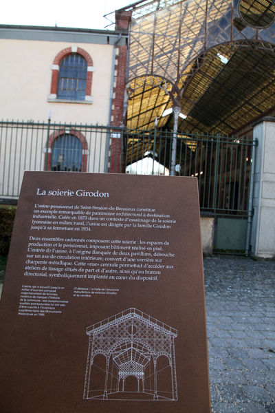 Construite par un industriel lyonnais de soie dans le 2ème moitié du XIXe siècle, l'usine de Saint-Siméon-de-Bressieux comporte deux parties reliées entre elles par une verrière. Attenant à l'usine, un grand bâtiment en pisé abritait le logement des ouvriers qui, venant de très loin, logeaient sur place pendant la semaine. Cette soierie implantée en milieu rural, donnait du travail à près de 1 000 employés. Elle a fonctionné jusqu'en 1934.