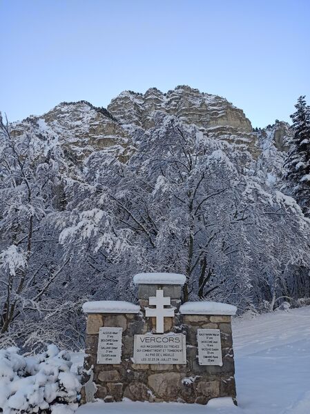 Itinéraire permettant d'aller jusqu'au fond de la vallée, au pied du Pas de l'Aiguille, et d'accéder au monument en hommage aux résistants du Vercors. Vue impressionnante sur les falaises des rochers du parquet et vue originale sur le Mont-Aiguille !