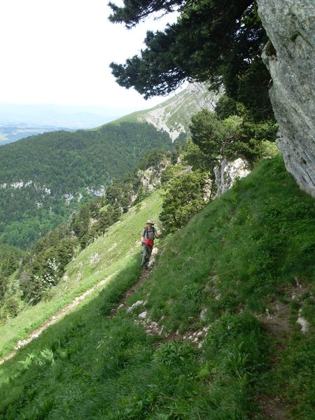 Déboucher sur l’alpage en haut de la cheminée d’Hurtière est un grand moment. Depuis le col, les vastes espaces ouverts sous la ligne des escarpements rocheux de la Grande Sure sont impressionnants. Vous cheminerez en pelouse de l’alpage d’Hurtières, du latin urtica qui évoque les orties (autour de la bergerie), vers l’alpage de Varavey qui porte le nom du vératre, liliacée d’alpage souvent confondue avec la grande gentiane jaune. Les alpages se poursuivent jusqu’au Chalet des Banettes avant de redescendre par la cheminée de Mont-Saint-Martin (prudence!)