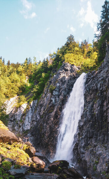Cette cascade provient du torrent dit de "la Pisse" venant directement du glacier de la Muzelle.