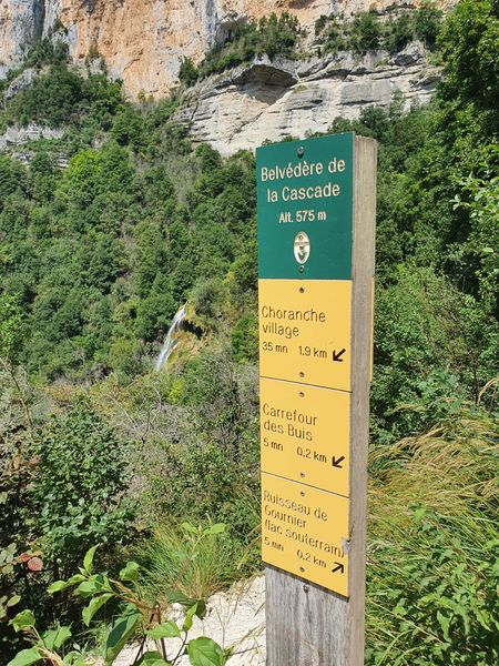 Balisage : Le sentier emprunte GR9 de Pont-en-Royans jusqu'au village de Choranche avec un balisage rouge et blanc. Puis du village jusqu'à la Grotte suivre le balisage jaune et vert.