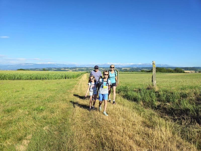 Vous continuez votre chemin sur les hauteurs jusqu’à Beauregard avant de tourner sur la droite pour revenir en direction de Montagnieu. De nombreux bois et avec des prés à vaches vous accompagnent tout le long du retour.