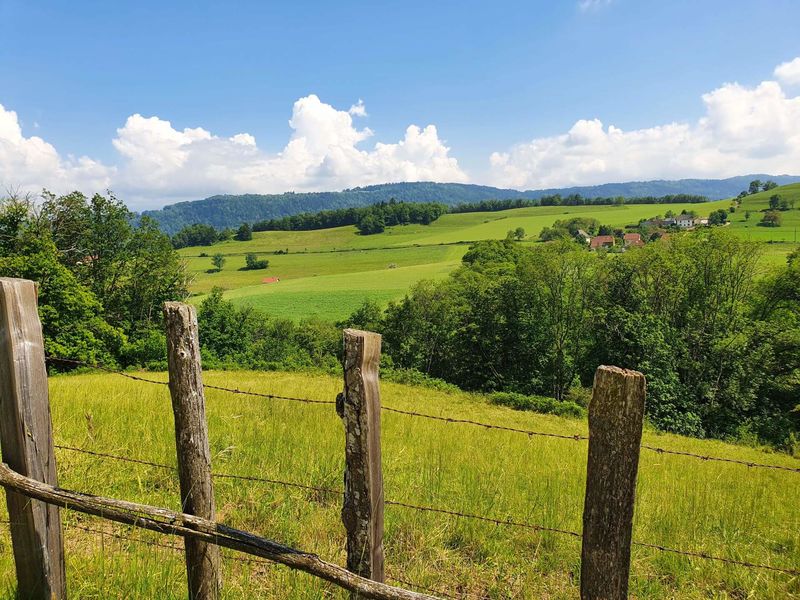 Après 2 kilomètres d'ascension en forêt, laissez-vous séduire par la campagne et les prairies vallonnées de St-Martin de Vaulserre. Panoramas et dépaysement assurés !