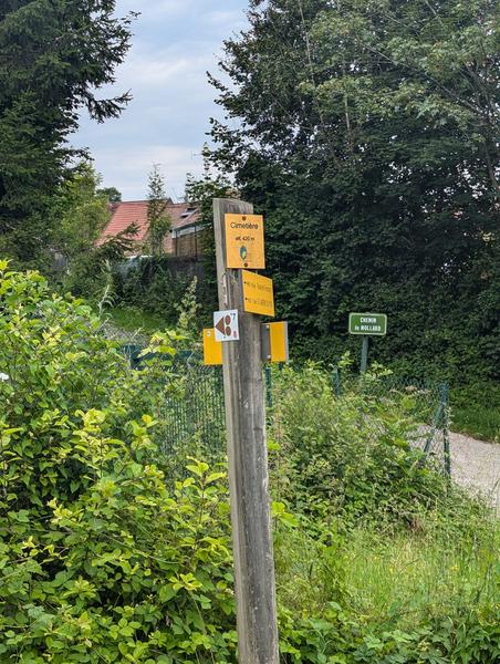 Sous réserve de conditions météo favorables.Descriptif pas à pas : Au départ du Plan d’eau de Saint-Joseph-de-Rivière, prendre en direction des étangs. Une fois au niveau du milieu du premier étang, tourner à droite et rejoignez le chemin goudronné de la tournerie sur quelques mètres, puis à gauche pour rejoindre le stade. Ici vous pourrez trouver un point d’eau. Une fois sortie du stade par le portillon vert, prenez successivement deux fois à droite pour retrouver la voie verte « Via Chartreuse ». Emprunter l’itinéraire le long du canal de l’Herretang, en face de l’Espace Naturel sensible de l’Herretang pendant 5km environ. Une fois le panneau jaune « Grand Villette » dépassé, à l’intersection suivante, traverser la route du Grenat et changer de berge sur le pont. Après la maison, tourner à droite pour quitter la Via Chartreuse. Suivre le chemin jusqu’au panneau « Pont de la Rosette ». Traverser le pont et tourner à gauche pour longer le Guiers jusqu’à la prochaine intersection. Prendre à droite jusqu’à la route et engagez-vous sur la Départementale en direction du rond point pour prendre la troisième sortie. A droite la route de la Rosette, puis renouveler cette direction après le pont qui traverse le ruisseau de l’Aigue Noire. Au panneau jaune « Aiguenoire », dirigez-vous à gauche, sur la route qui monte progressivement jusqu’à rejoindre la route départementale. Après le panneau jaune « La Marine », continuer à monter sur votre droite et passer devant le panneau « sous la Colombaise » puis « Tramolley », le point culminant du parcours ! Engager la descente en direction de Piquetière, vous longerez le monastère Notre Dame du Saint Désert. Vous pourrez ensuite admirer la vue et envisager un pique-nique ou une pause au niveau de la table d’orientation située à Côte Curt. Puis, descendre prudemment sur le chemin caillouteux. Restez vigilant dans la descente et prendre le chemin à 180° à droite. Continuer jusqu’au hameau de Provenches, où vous prendrez à gauche après avoir rejoint la route. Poursuivre sur la route descendante en passant aux panneaux « Les Martins » et « Saint Laurent du Pont ». Une fois arrivé aux abords de la ville, prendre l’avenue de la gare à droite, puis à gauche avant le grand parking. Traverser la passerelle qui passe au-dessus du Guiers Mort. Au niveau du parking place du marché, prendre à droite pour longer la Maison du tourisme où vous pourrez faire une halte pour vous renseigner ou regonfler vos pneus. Une trousse de petites réparations est disponible. Une fois sur l’Avenue Jules Ferry, au niveau de la poste, continuer à gauche sur l’Avenue Jean Jaurès, puis tourner rapidement à droite avant la Fontaine à eau. D’ici, visualisez l’ascension en lacets qui vous attend pour atteindre la chapelle Notre Dame du Château et sa vue panoramique sur Saint Laurent du Pont et la vallée. Il est recommandé de descendre du vélo pour cette portion. Suivre le sentier, puis, une fois au panneau « Route de Fontmartin », la route descend vers la droite jusqu’au parking du cimetière. Prendre à gauche, le chemin goudronné qui se transforme en sentier. Une fois la route rejoint, au hameau des Raviers, emprunter la route qui descend à droite. Poursuivre ensuite sur le chemin à gauche pour entamer l’ascension de la dernière montée jusqu’au panneau « Le Morard ». Continuer sur la route pour jusqu’au Bourg de Saint-Joseph-de-rivière. Traverser la route départementale RD520 dans le respect du code de la route. Avant le lavoir, prendre la route de l’école à gauche, puis à droite après le pont sur le chemin de la tournerie. Vous retrouvez sur la gauche le tracé de départ en sens inverse pour rejoindre les étangs.