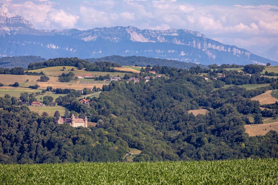 Les crêtes offrent une vue imprenable sur les châteaux de Virieu et de Pupetières. Le panorama est à 360° avec les massifs du Bugey, de Chartreuse, des Bauges, du Vercors… Vue sur le Mont Blanc par temps clair.